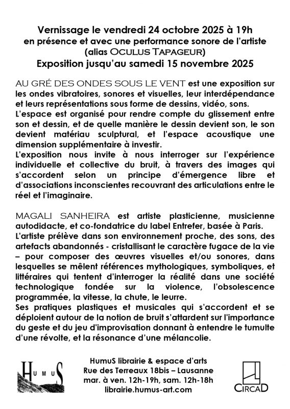 Avec un concert/performance d'Oculus Tapageur & Gaël Angelis